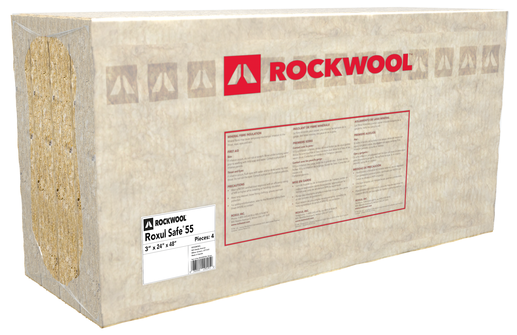 Stone wool insulation for exterior and interior steel-faced firewall applications. ROXUL Safe 55 and 65 products and solutions for tested and approved 1- and 2-hour fire-rated systems.